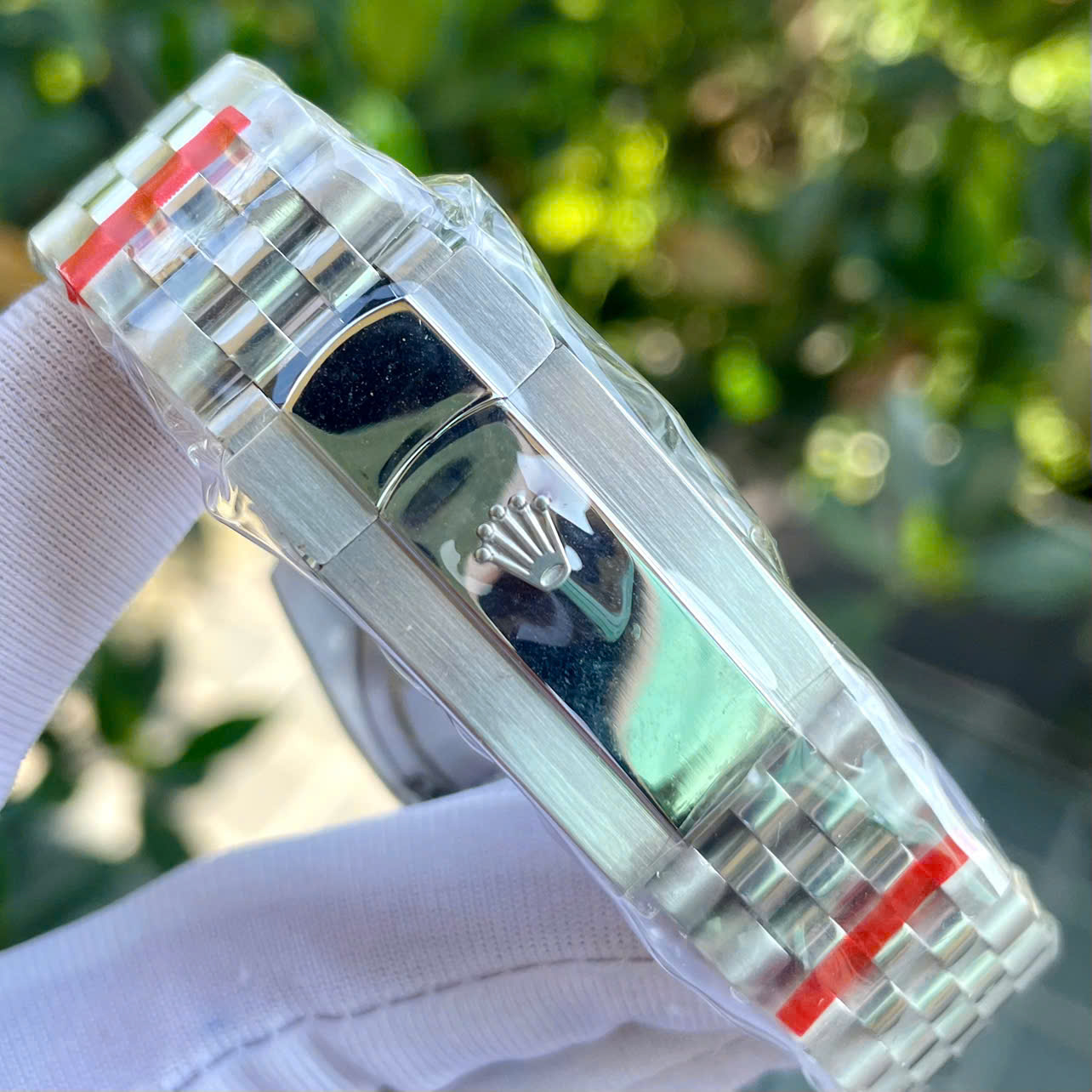 - Đồng hồ Rolex nam máy cơ dòng Rolex Date Just thiết kế các vạch số đính đá nổi bật chạy kèm lịch ngày