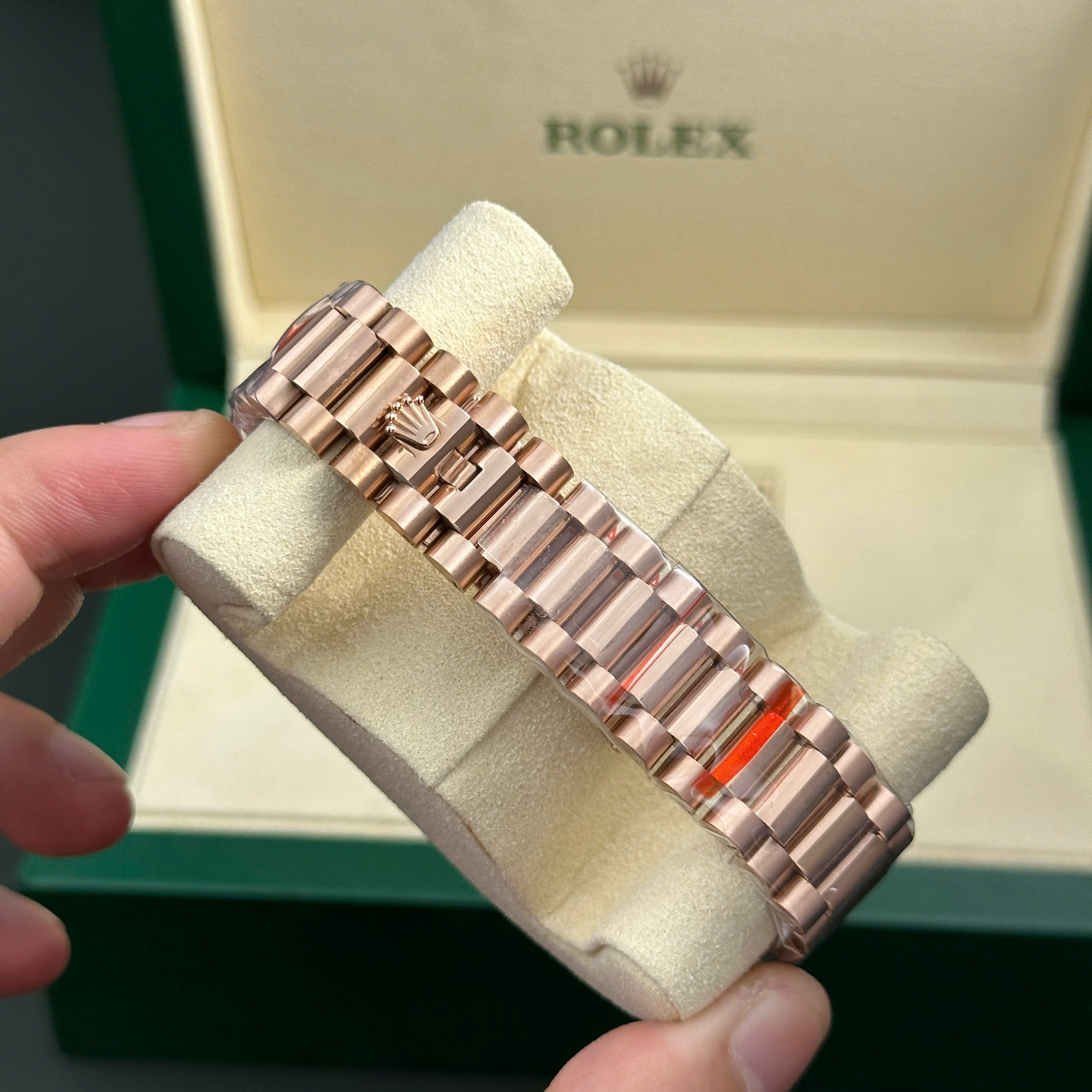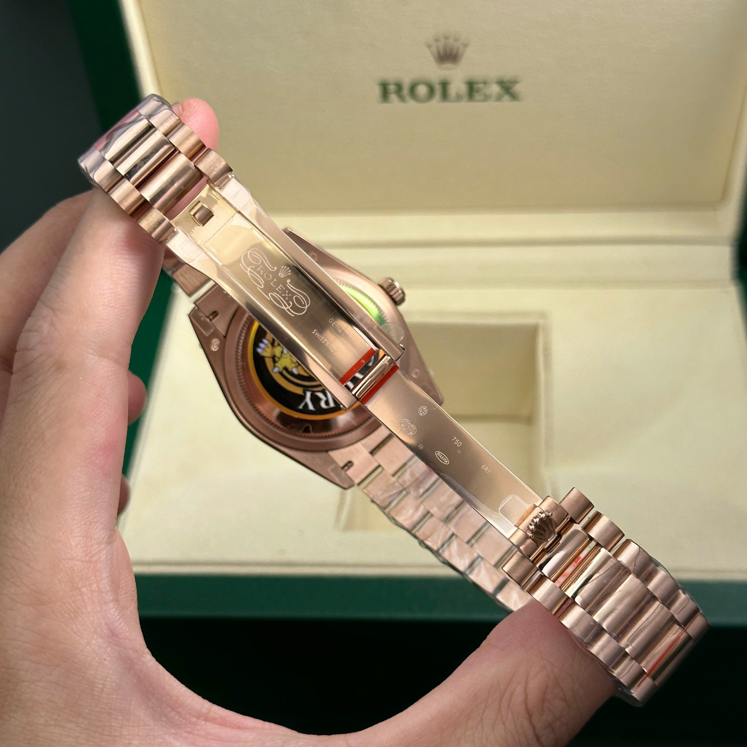 Chiếc Rolex Day-Date 128235 với mặt chocolate tinh tế đã được tinh chỉnh kỹ lưỡng tại DWatch, mang lại sự đẳng cấp vượt trội và tái hiện trọn vẹn tinh thần của một chiếc Rolex hàng đầu. Quá trình điều chỉnh máy móc đã tạo ra một chiếc đồng hồ đạt độ ổn định và độ chính xác tối ưu, đáp ứng tốt nhu cầu của người sử dụng.