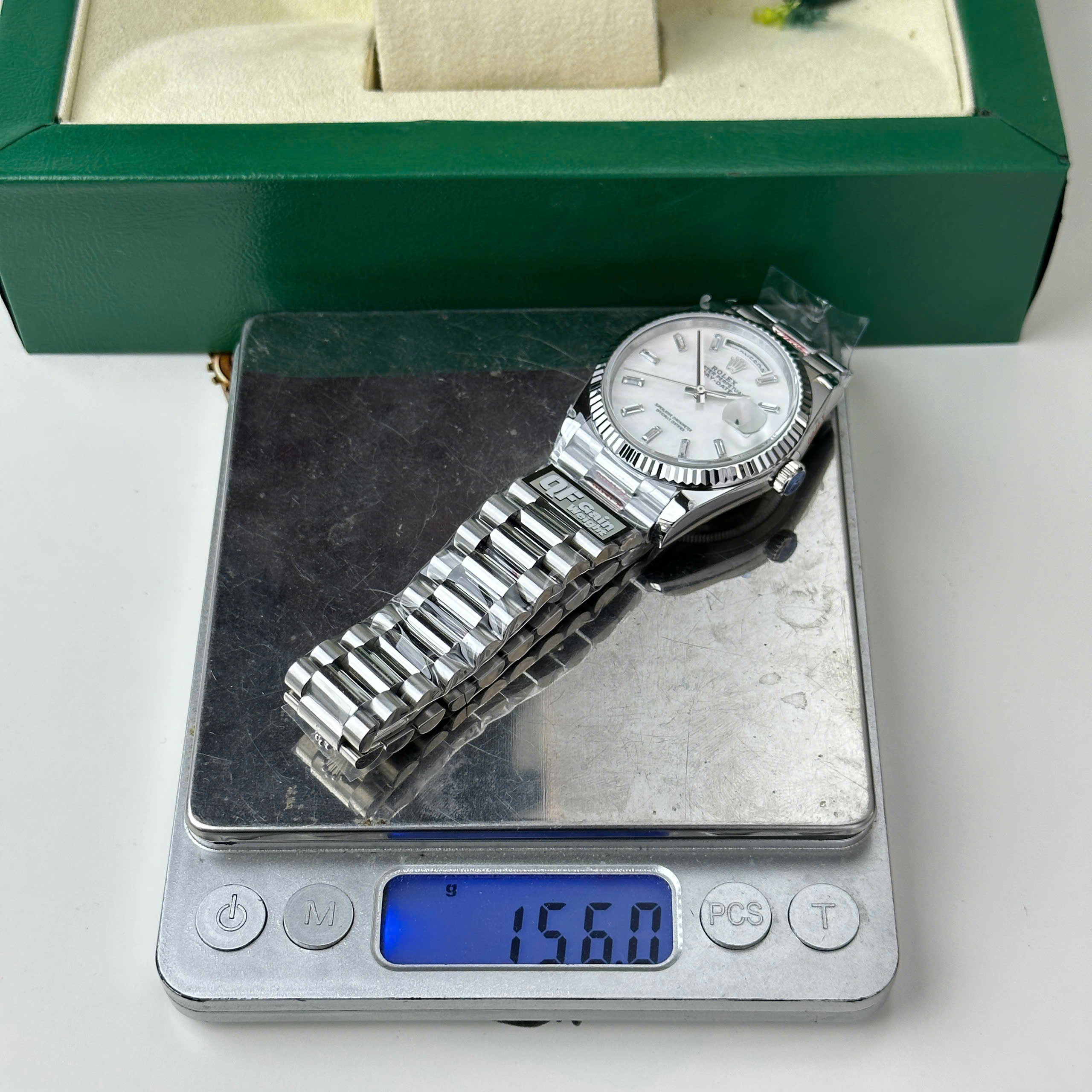 Chiếc Đồng hồ Rolex Day-Date 128239 Replica 11 mặt khảm xà cừ trọng lượng 156 gram nhà máy QF 36mm là một kiệt tác thủ công với sự kết hợp hoàn hảo giữa thiết kế tinh tế và chất lượng vượt trội, xứng đáng trở thành lựa chọn hàng đầu cho những ai coi trọng giá trị thời gian và phong cách cá nhân.