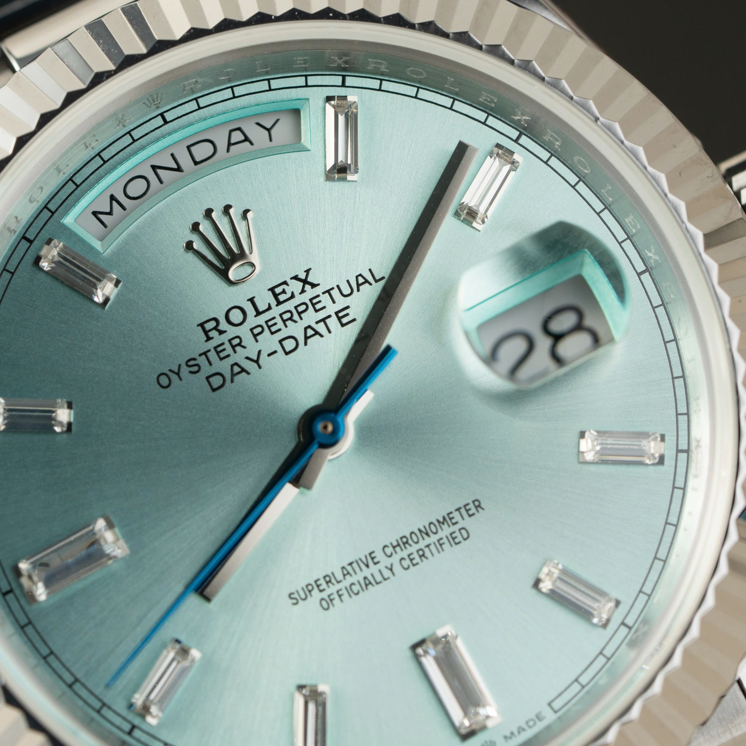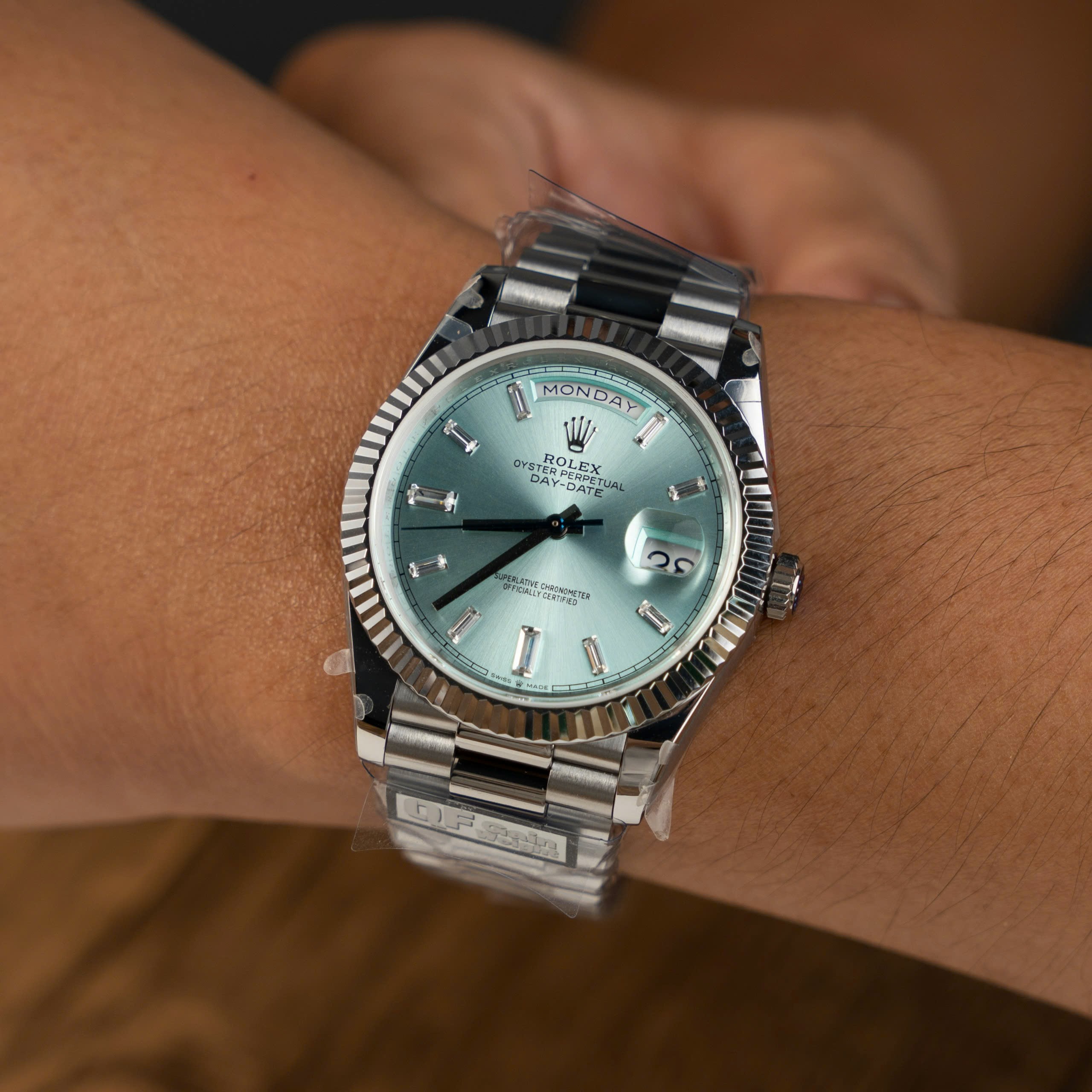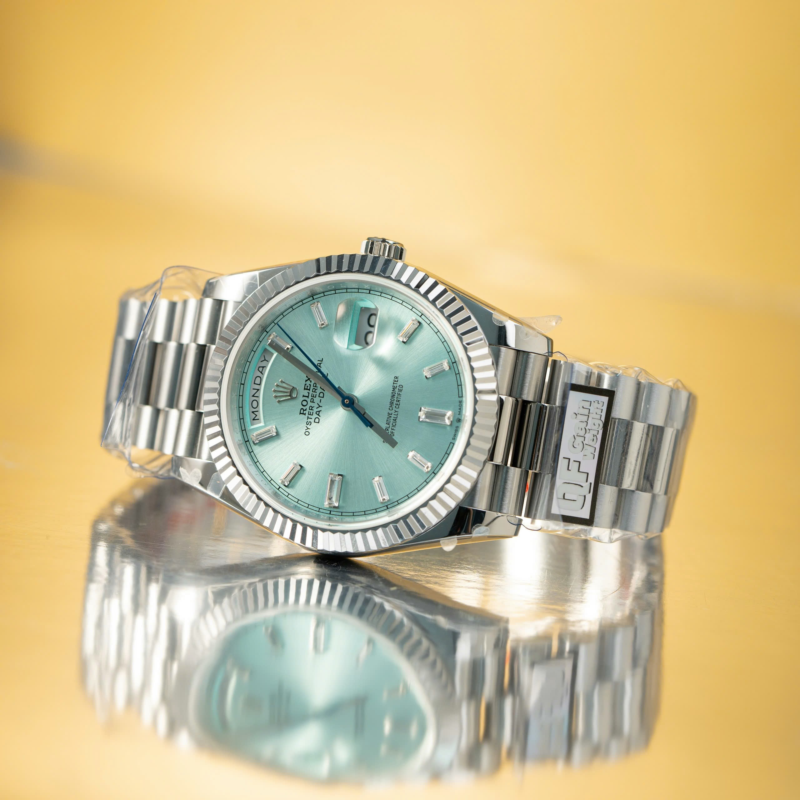 Đồng hồ Rolex Day-Date 228236 mặt xanh băng trọng lượng 186gram Rep 11 nhà máy QF 40mm