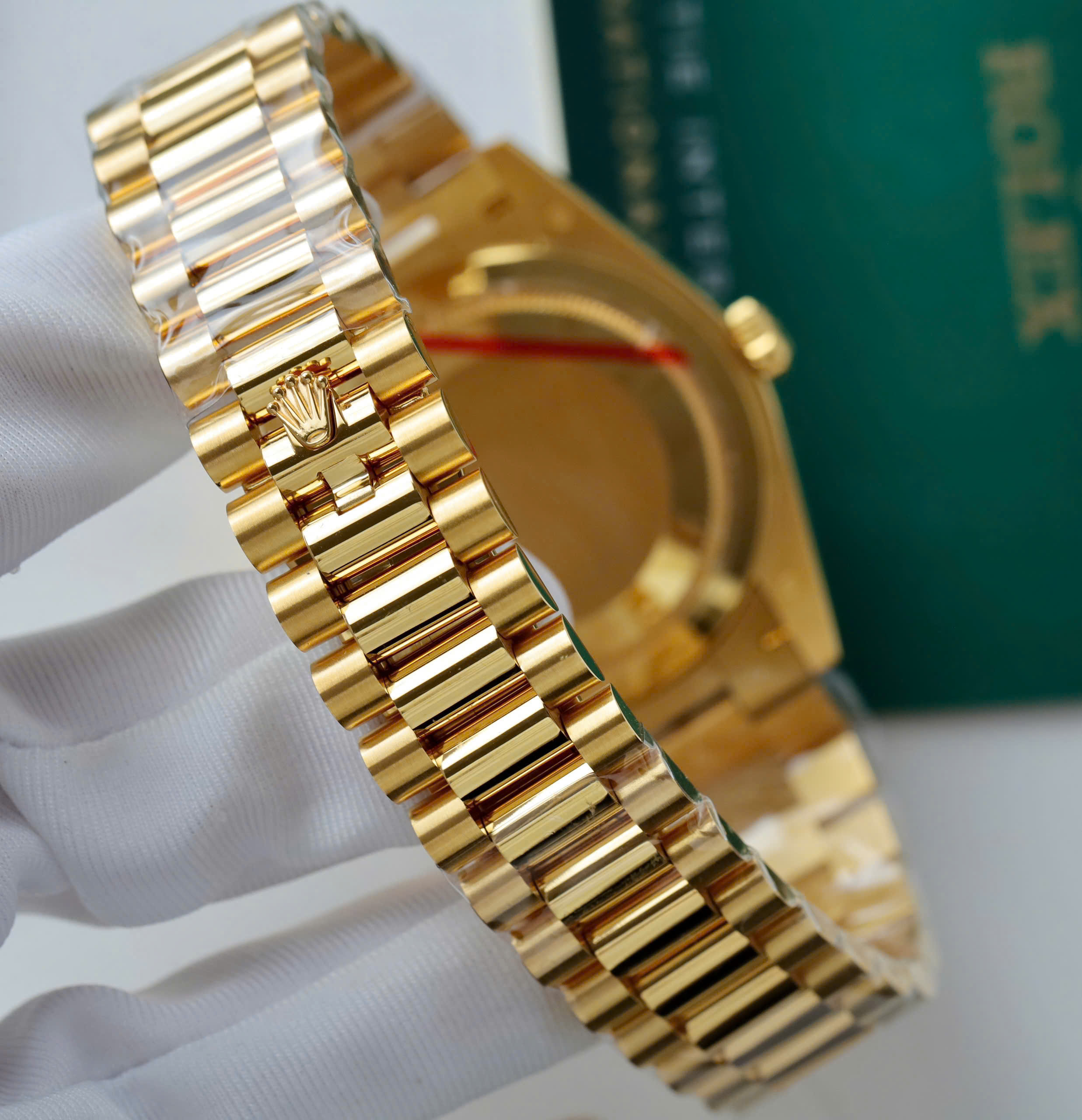 Đặt mua Đồng Hồ Rolex Day-Date Bọc Vàng 18k Rep 11 Mặt Xanh Green Trọng Lượng 175 Gram V3 GM Factory 40mm