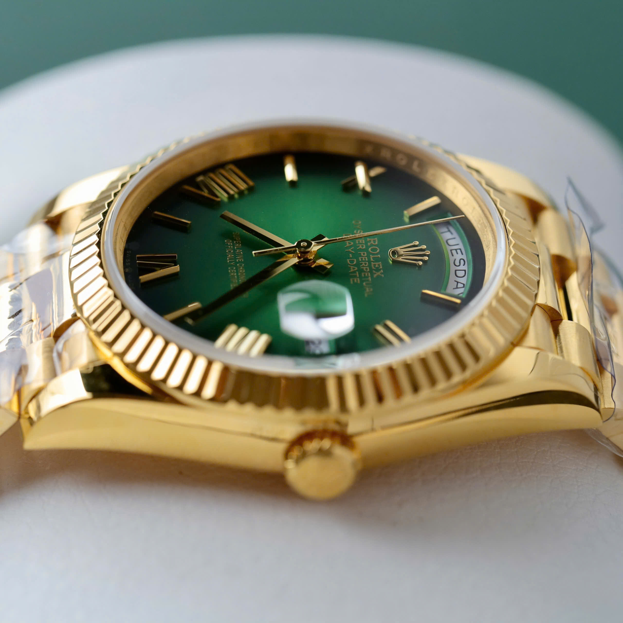 Đồng Hồ Rolex Day-Date Bọc Vàng 18k Rep 11 Mặt Xanh Green Trọng Lượng 175 Gram V3 GM Factory 40mm