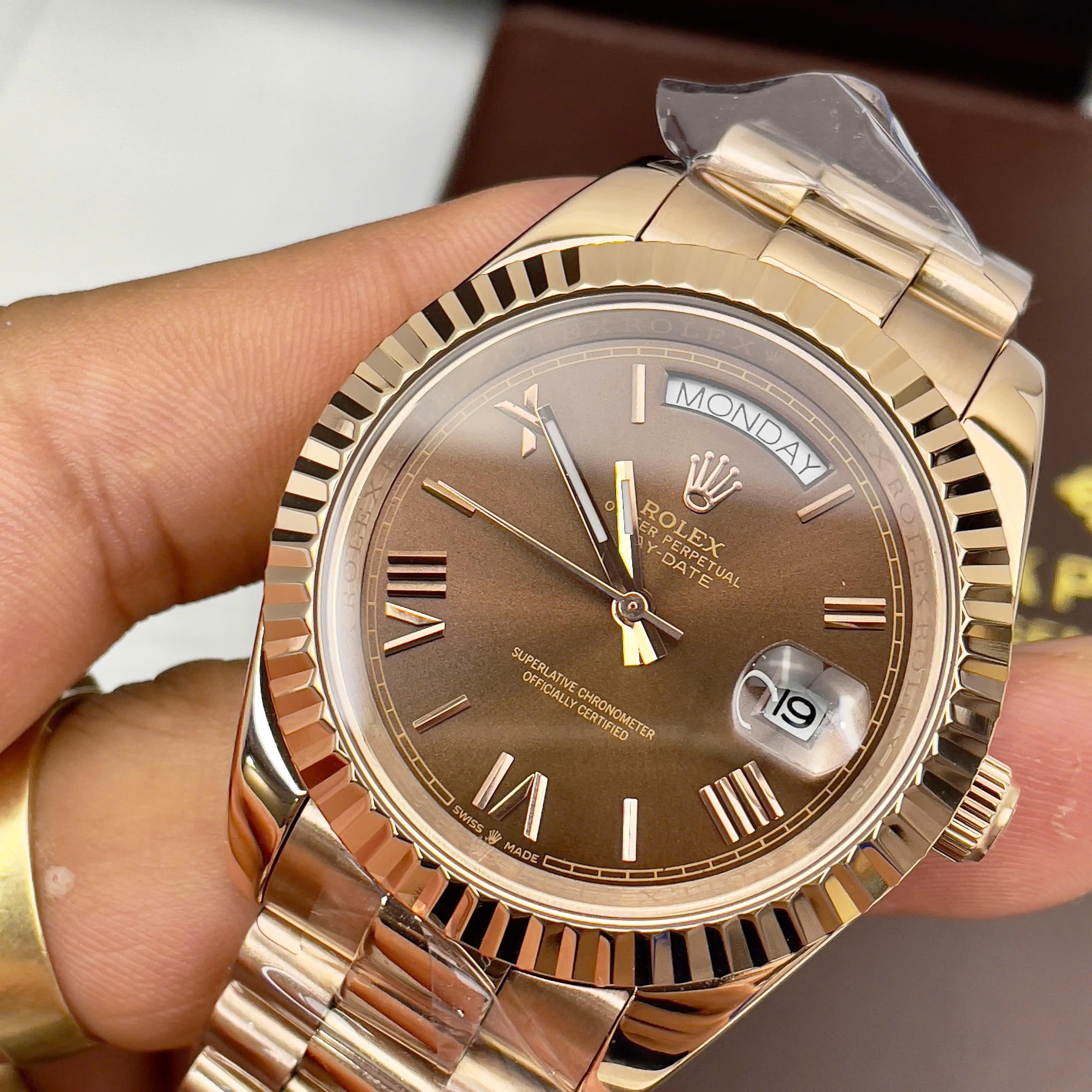 Đồng hồ Rolex Day-Date Chocolate nam cọc số la mã Fake cao cấp 38-40mm