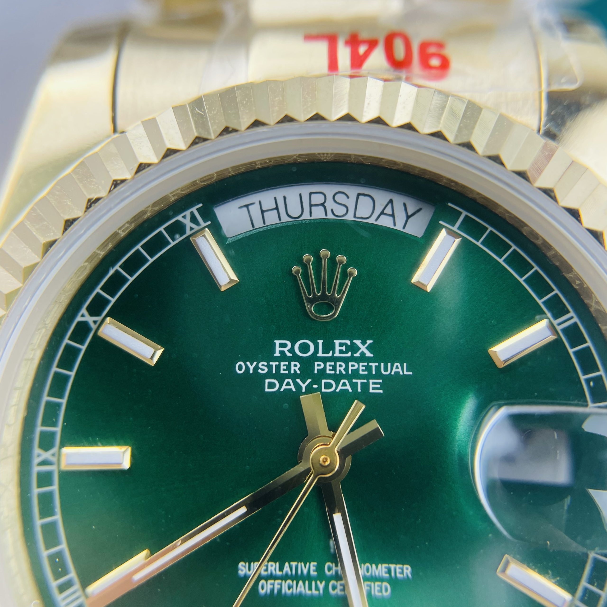 Đồng hồ Rolex Day-Date nam Green cọc số dạ quang Super Fake máy cơ Nhật 37mm