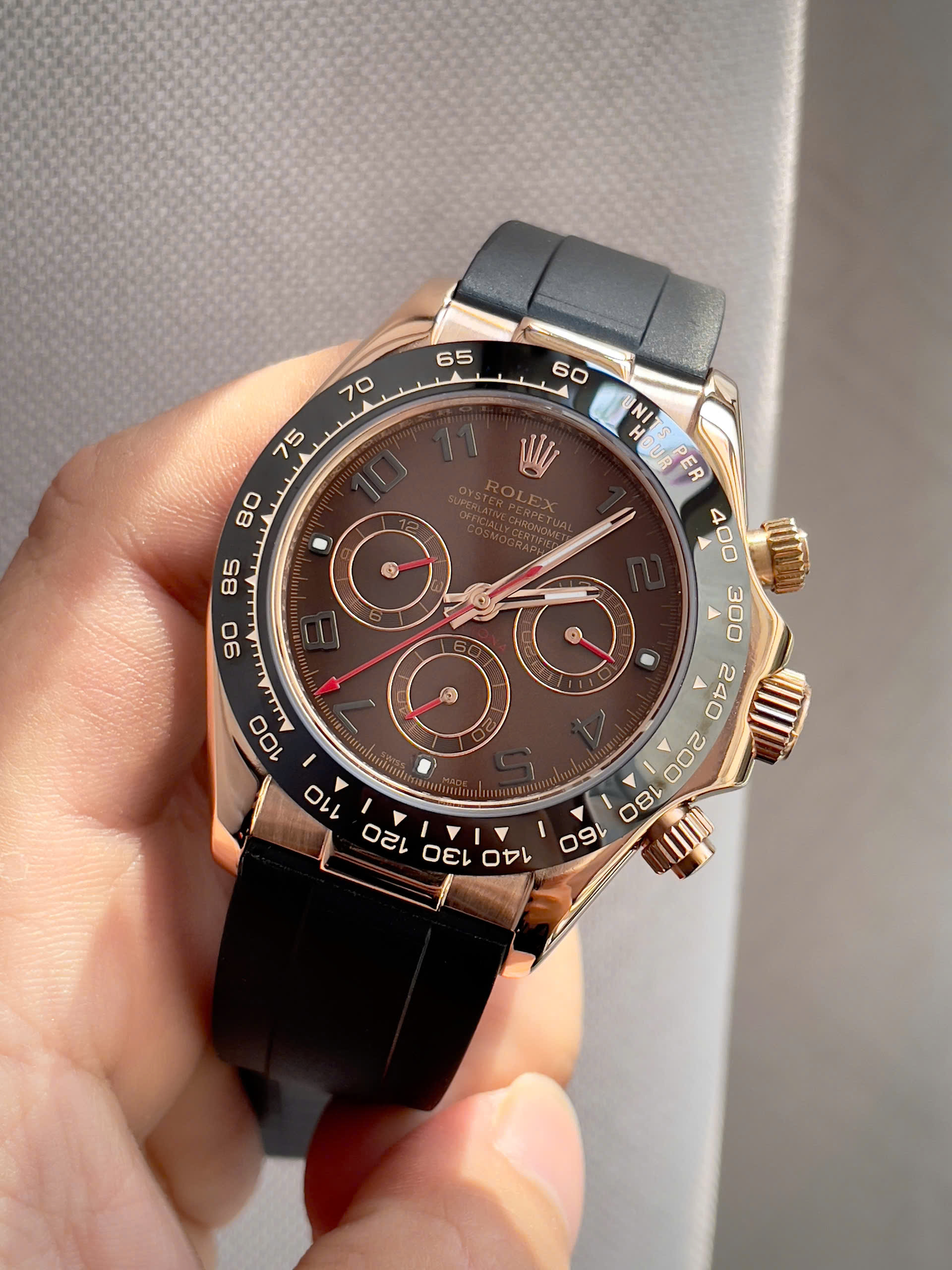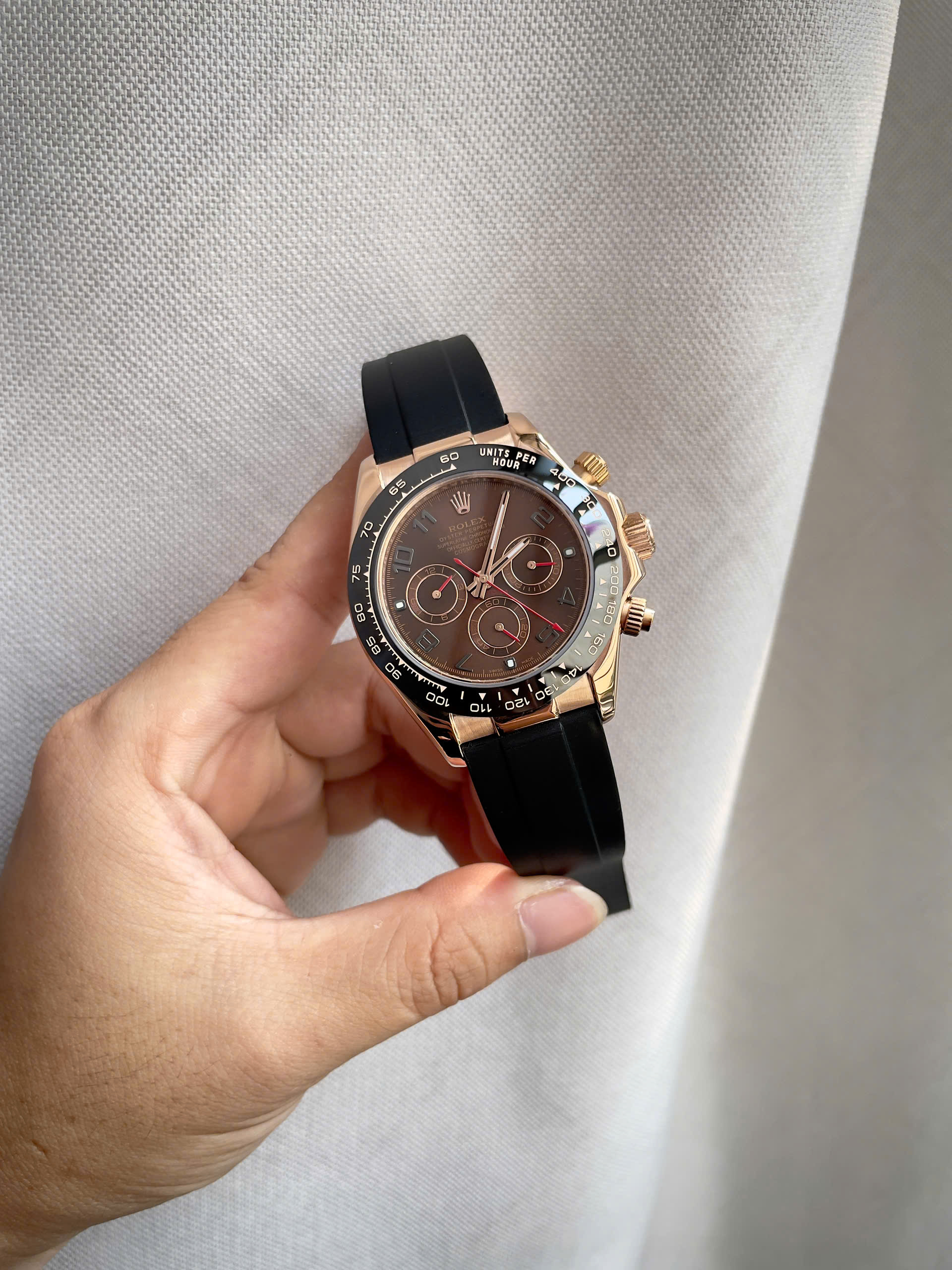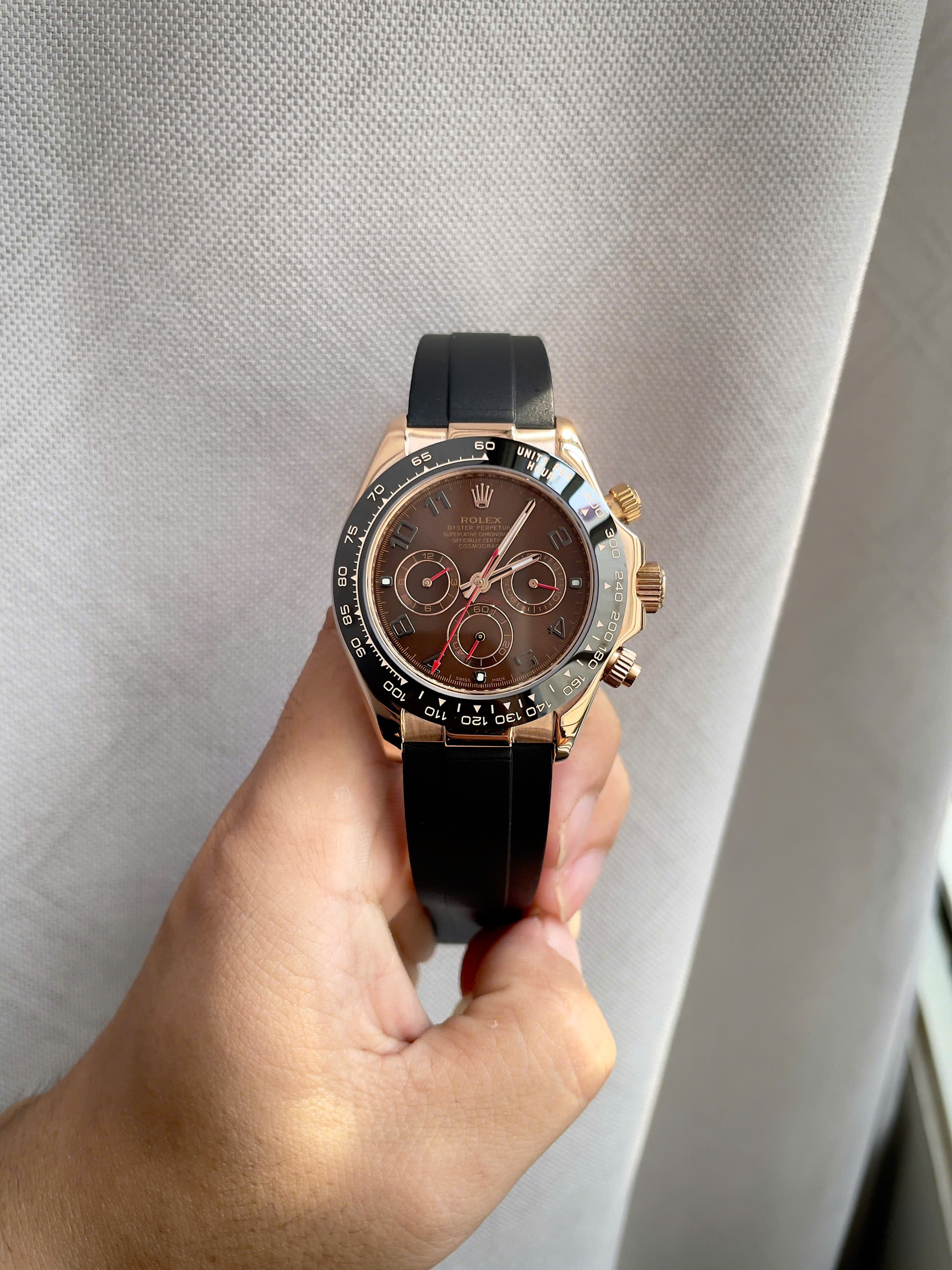 Đồng hồ Rolex Daytona Cosmograph nam mặt chocolate cọc số học trò fake 11 40mm