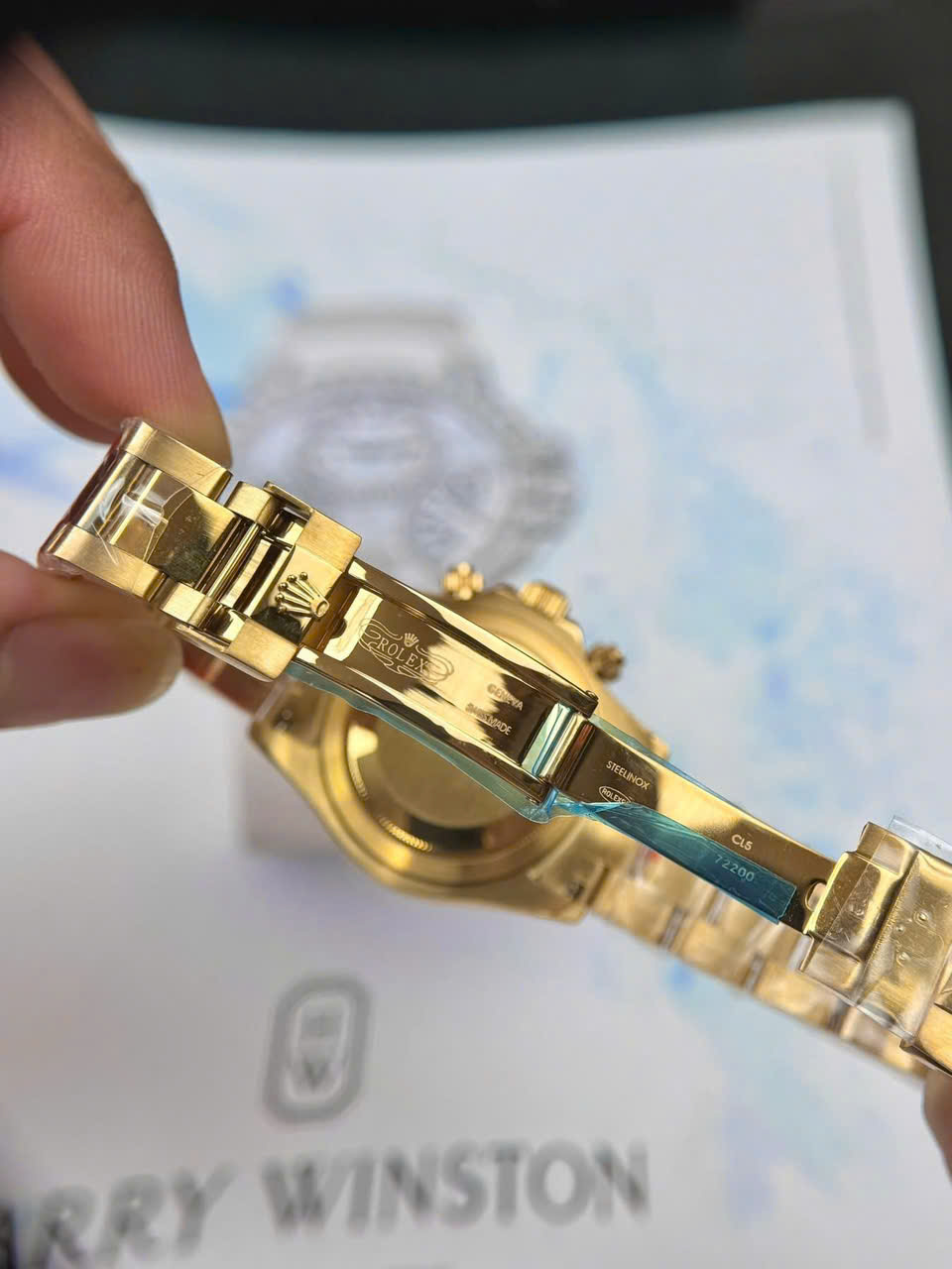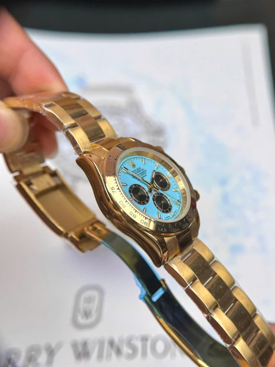 Đặt mua Đồng hồ Rolex Daytona Cosmograph nam vàng gold mặt xanh băng fake cao cấp 40mm
