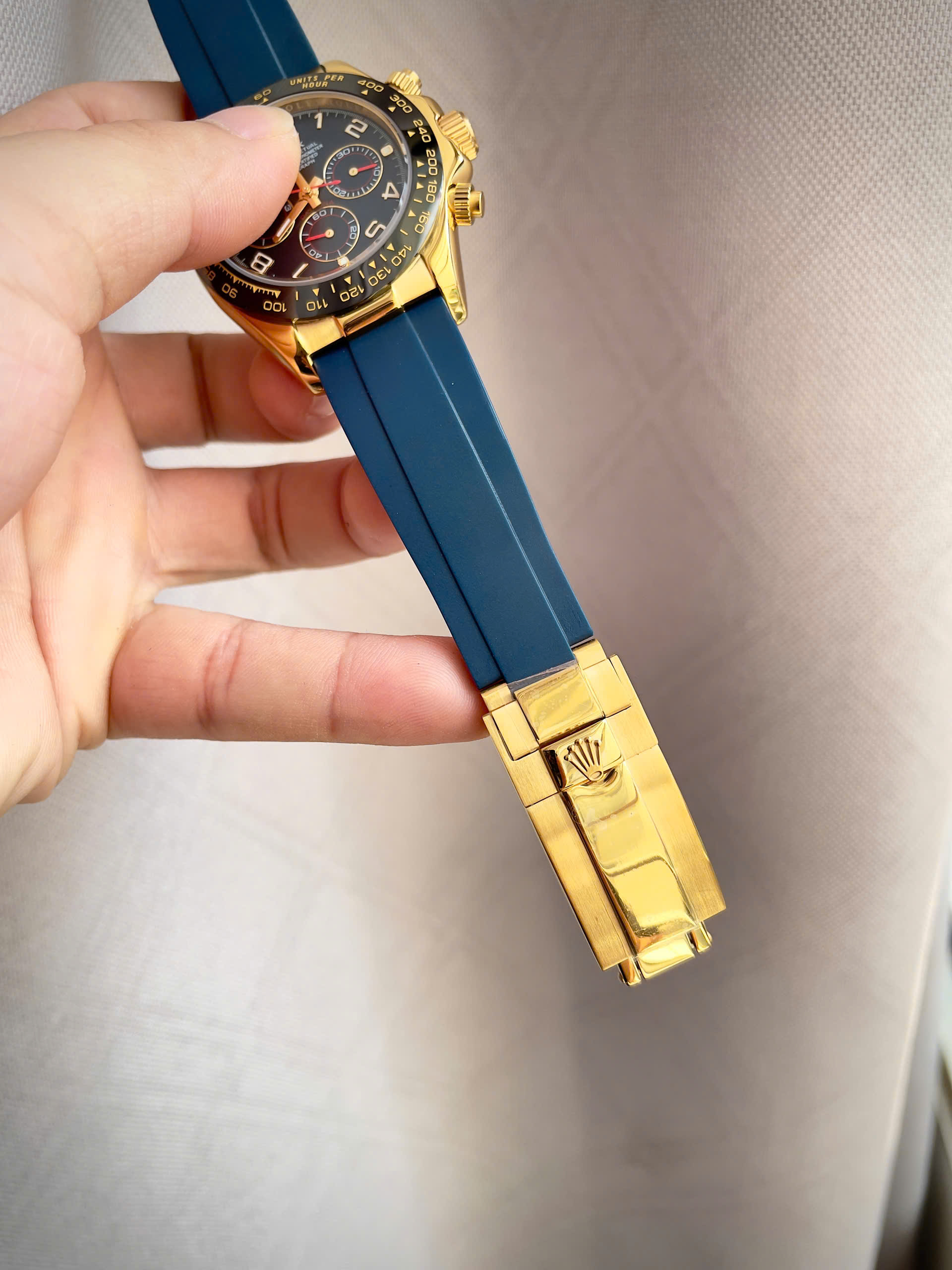 Đặt mua Đồng hồ Rolex Daytona Cosmograph vàng gold dây cao su xanh fake 11 40mm