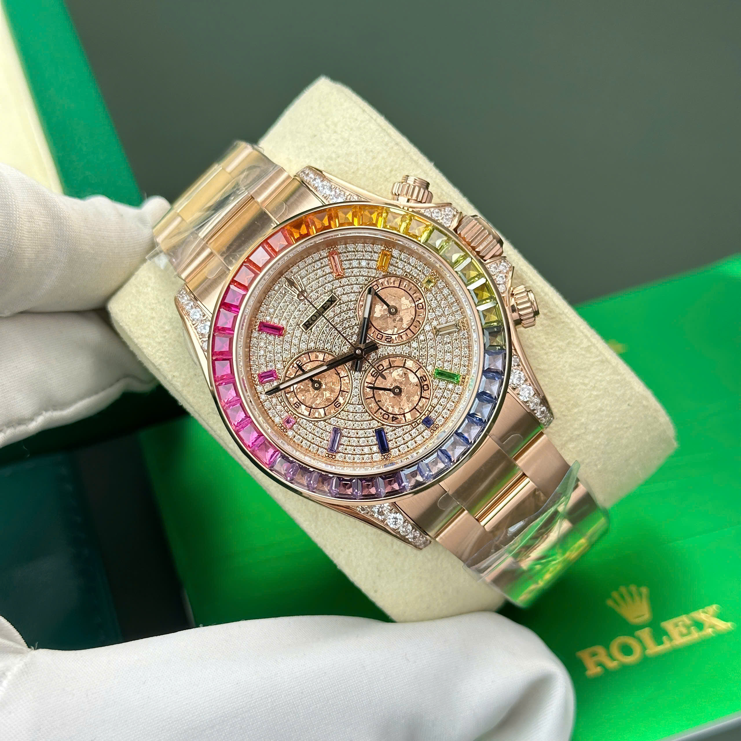Đồng hồ Rolex Daytona Rainbow đính đá dây kim loại nhà máy BT Replica 40mm