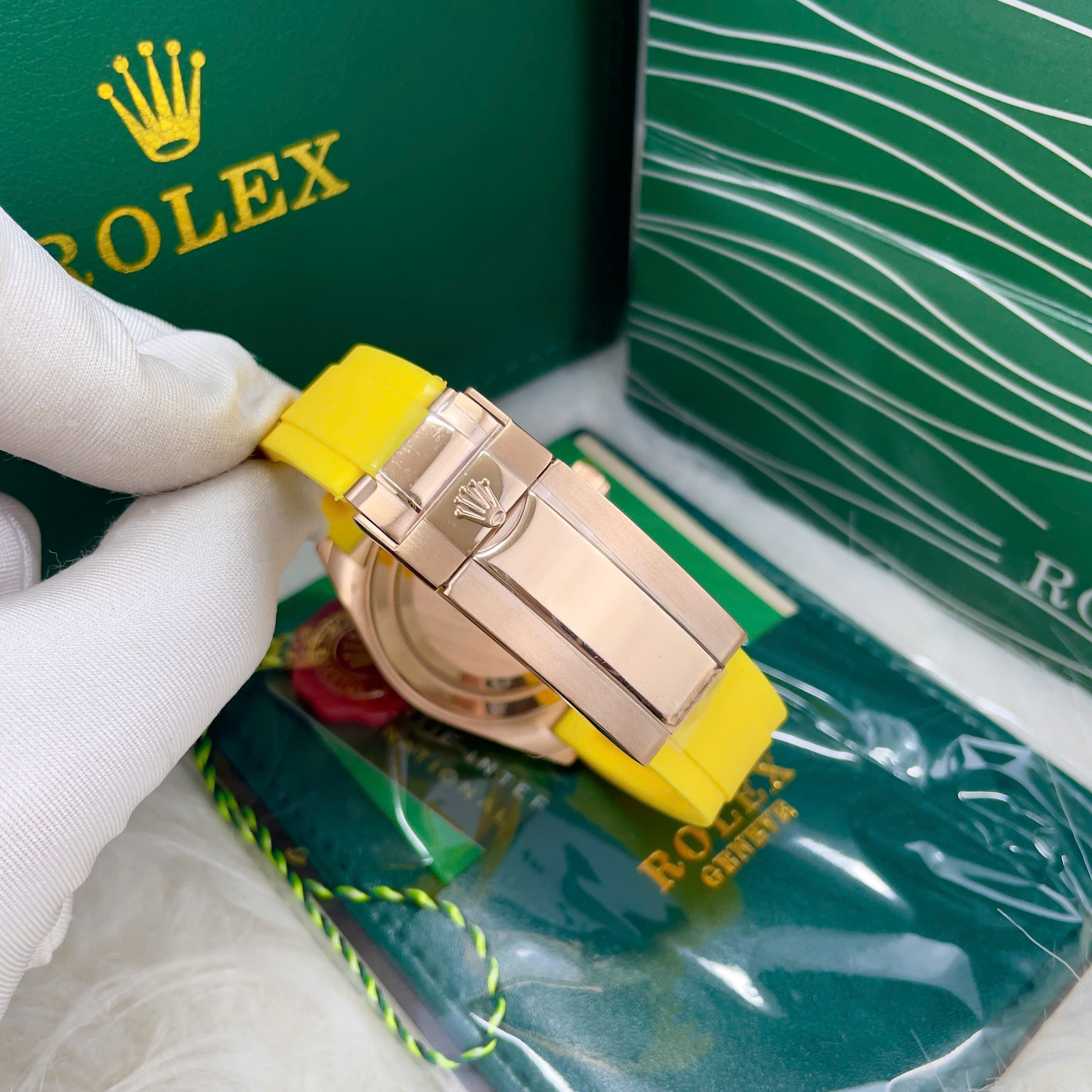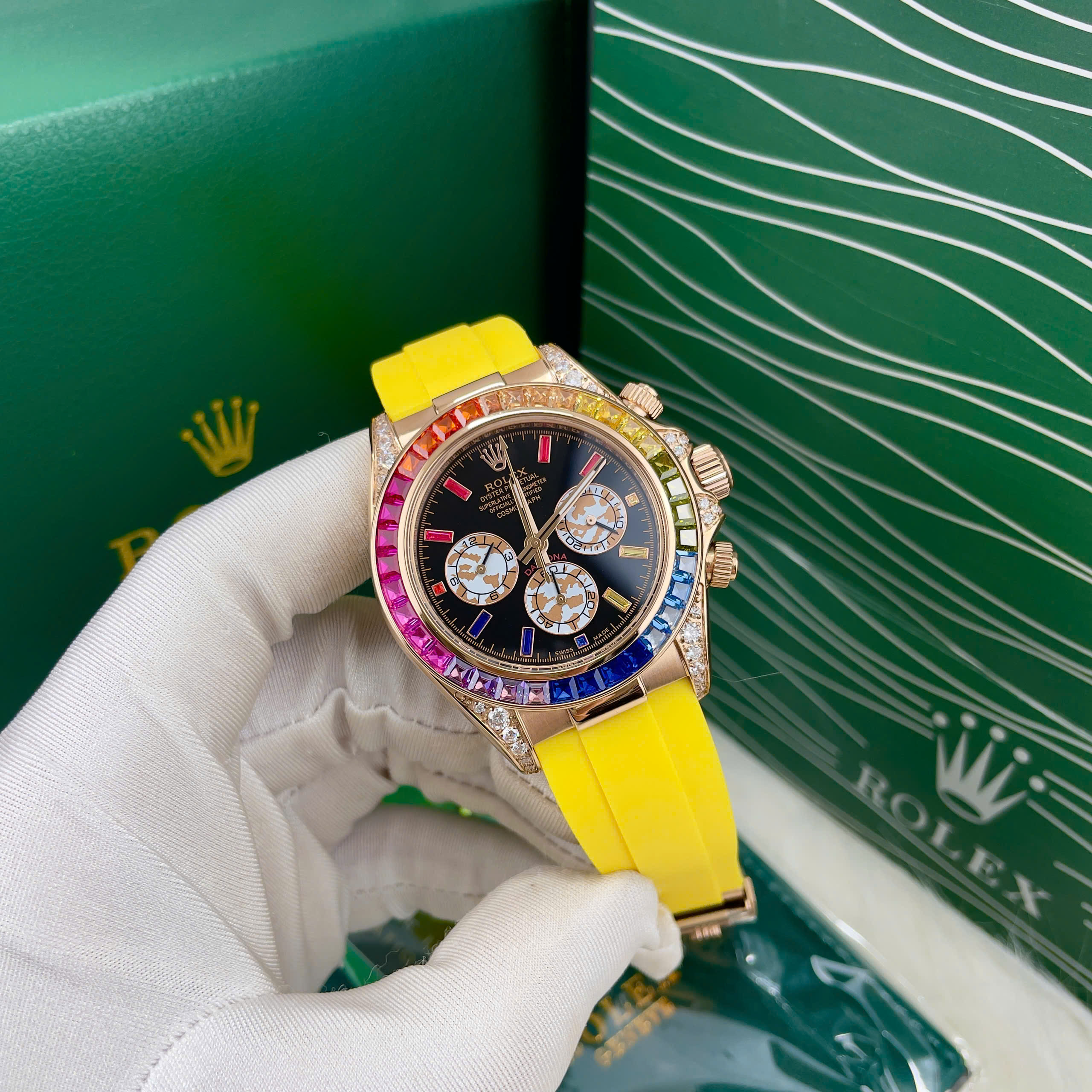 Đặt mua Đồng hồ Rolex Daytona Rainbow nam dây cao su vàng fake cao cấp 40mm