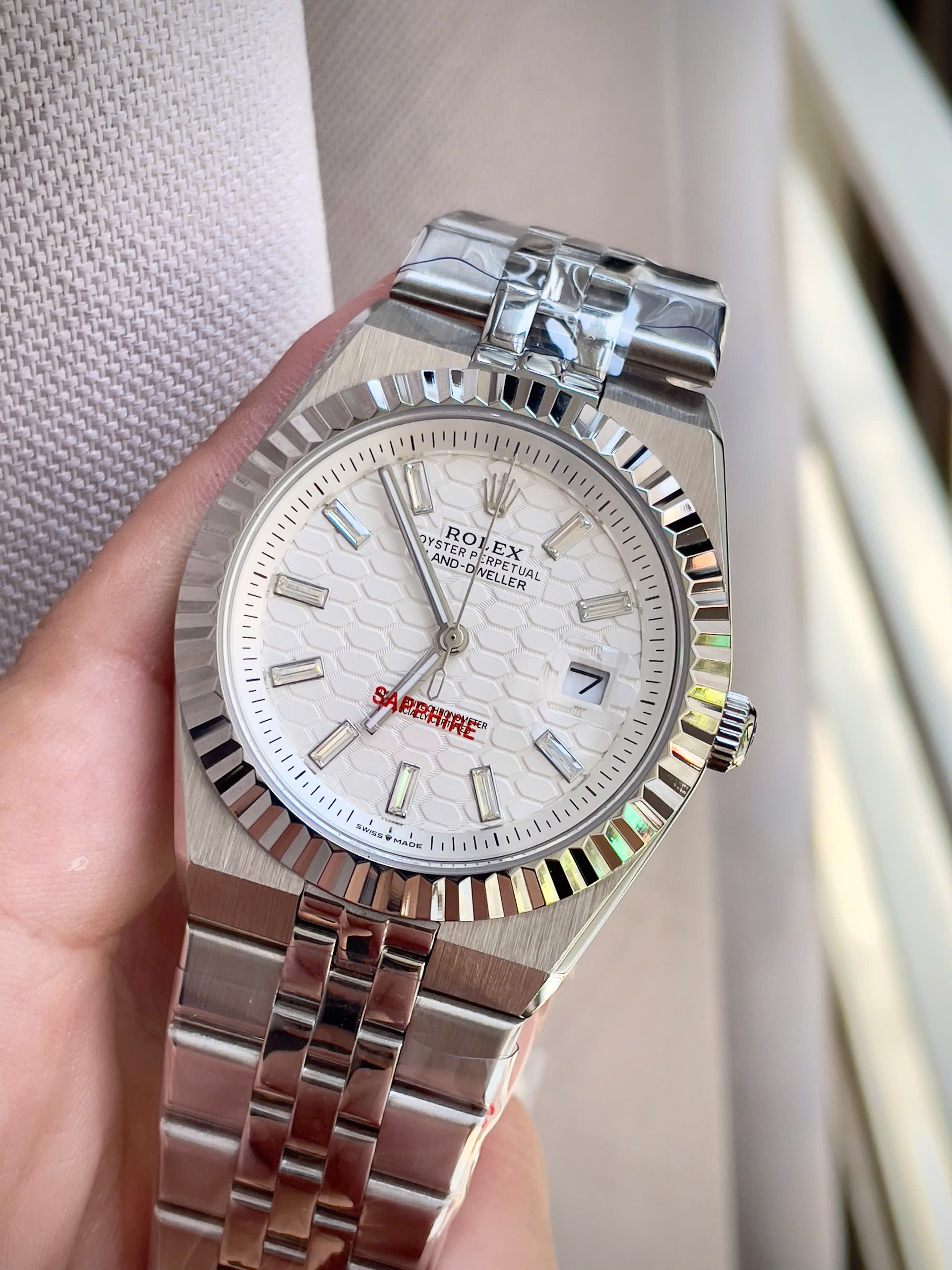 Đồng hồ Rolex fake 11 Land – Dweller nam mặt tổ ong trắng 41mm