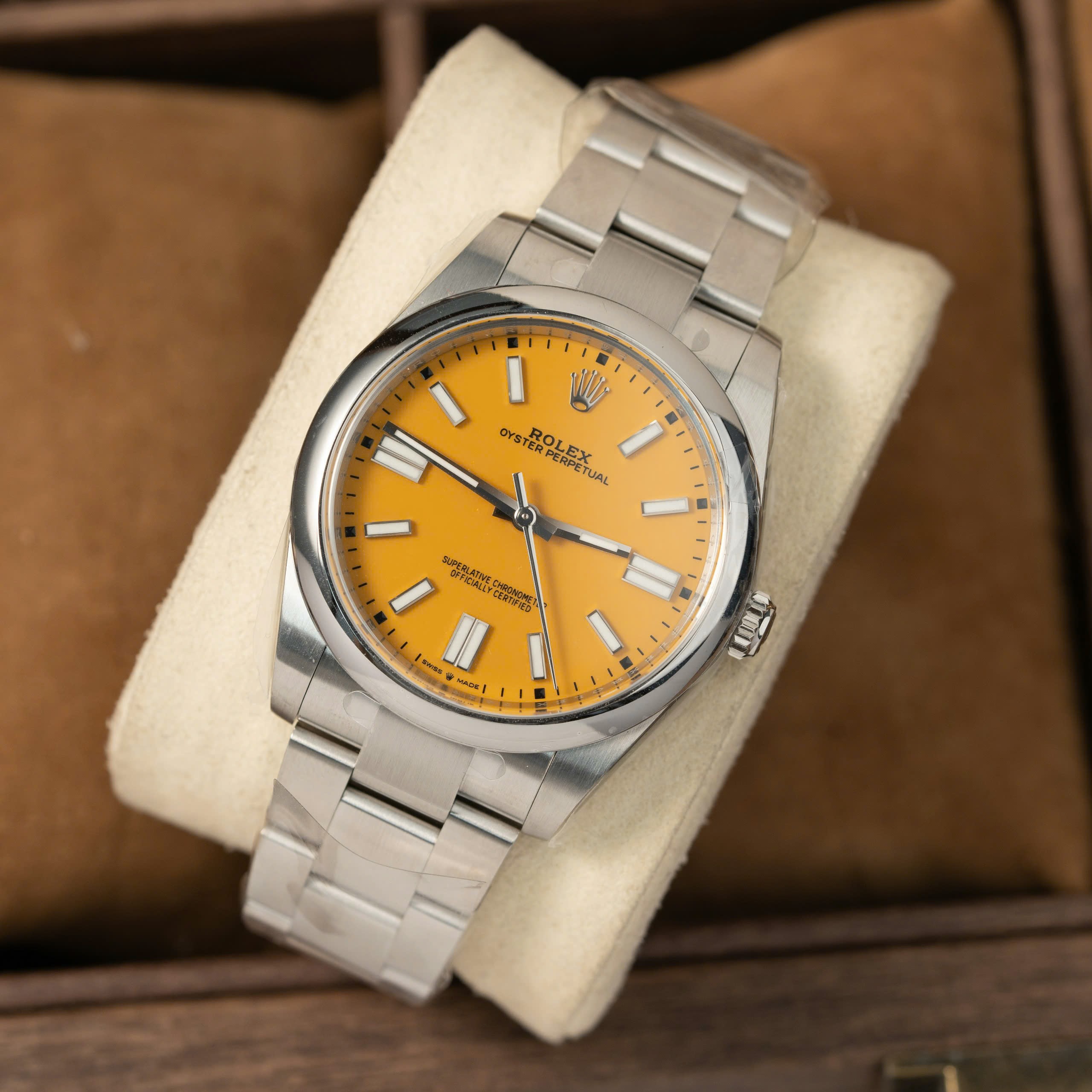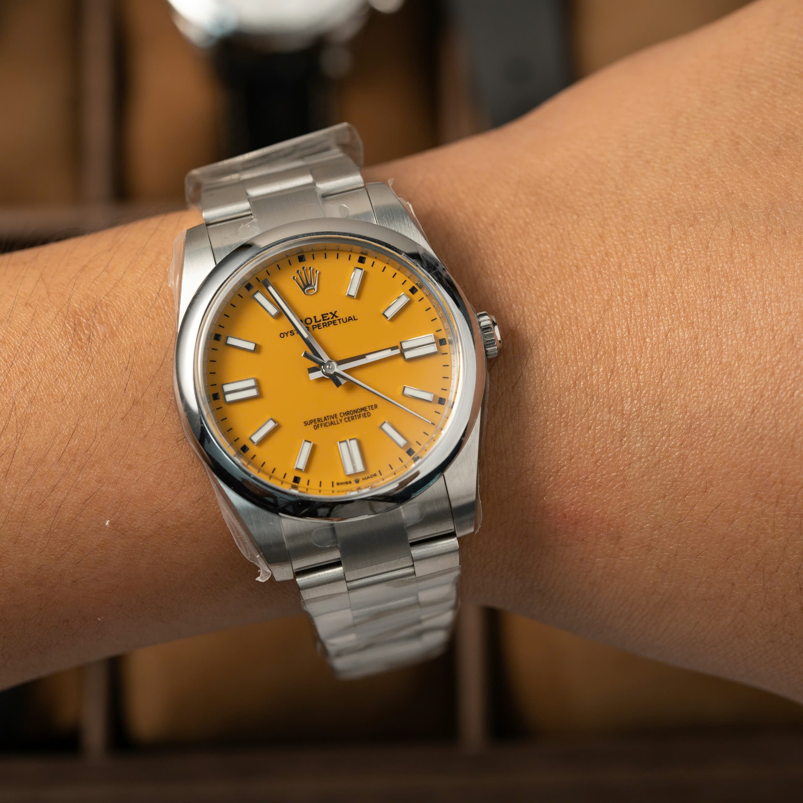 Đồng hồ Rolex Oyster Perpetual 124300 Rep 11 mặt số màu vàng nhà máy Clean 41mm