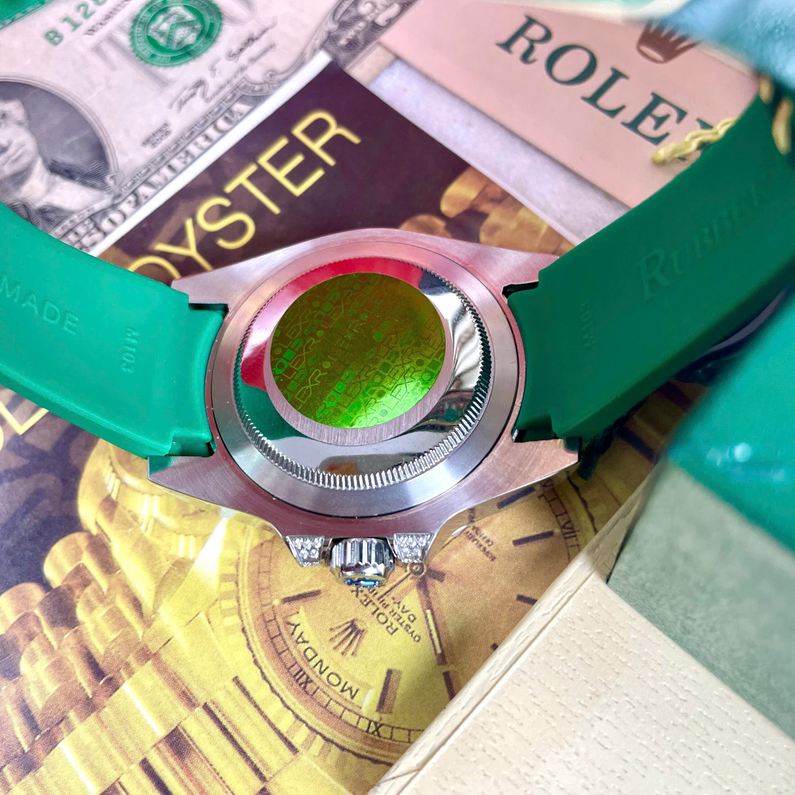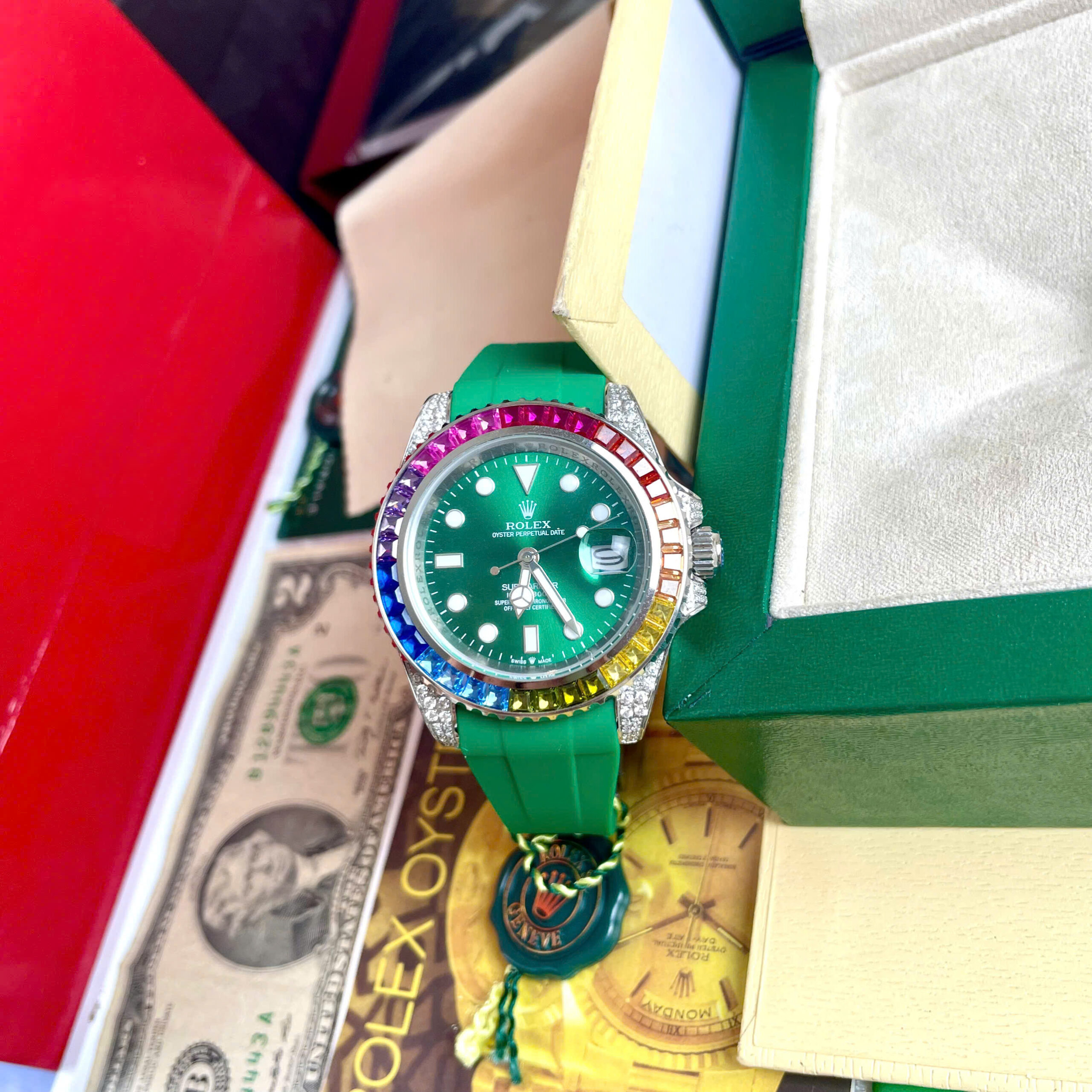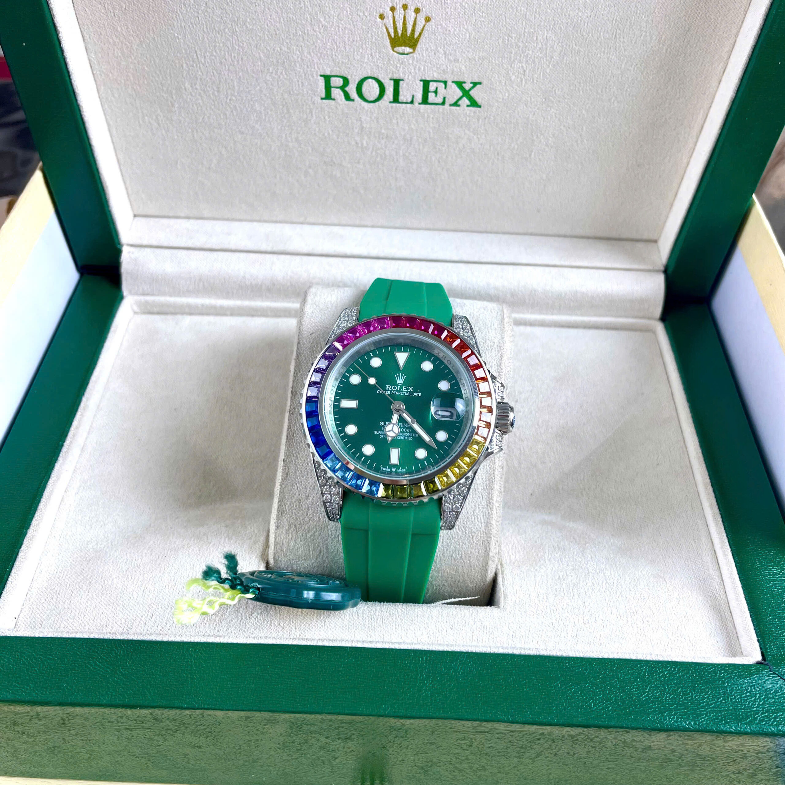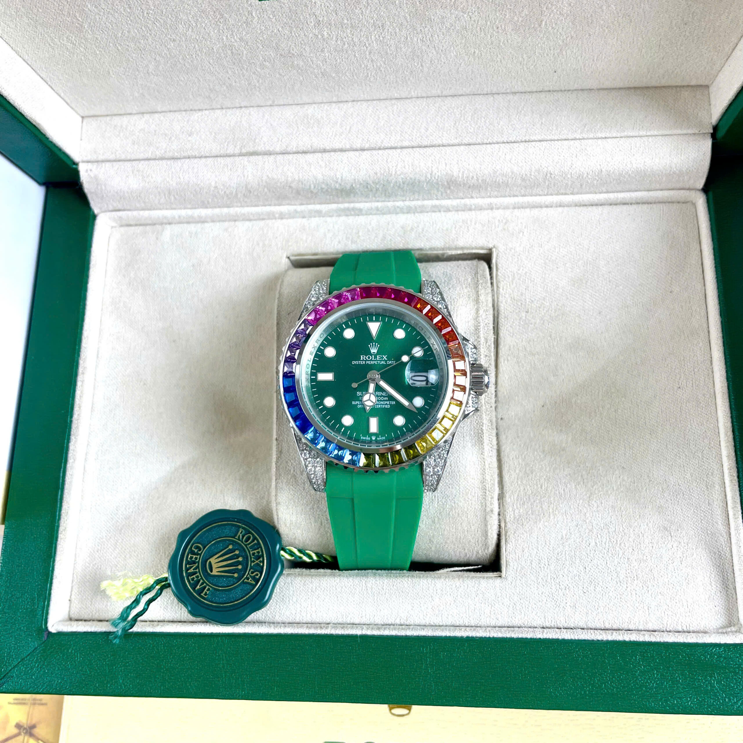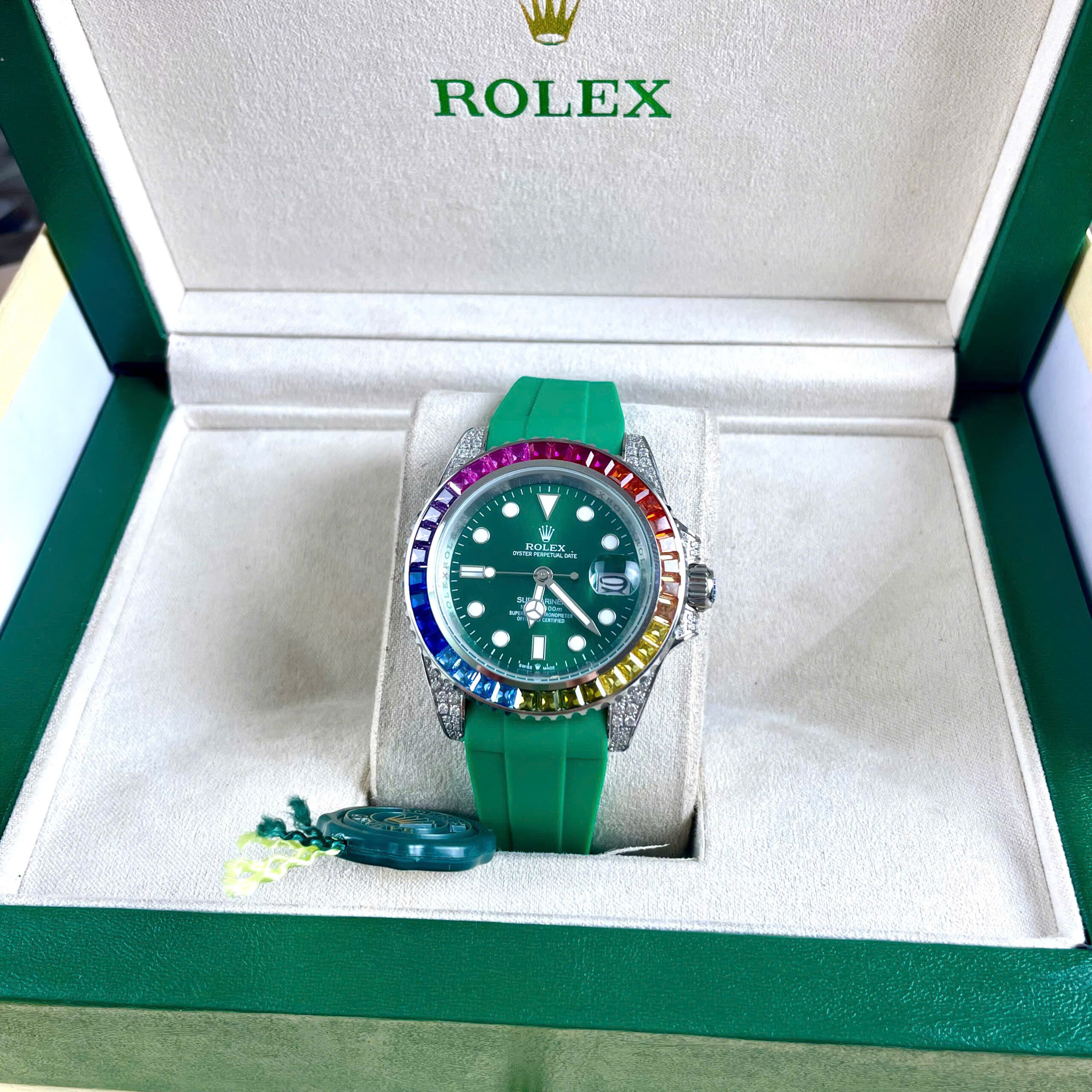 Đồng hồ Rolex Submariner nam đính đá xanh blue 7 sắc cầu vồng Super Fake 11 40mm