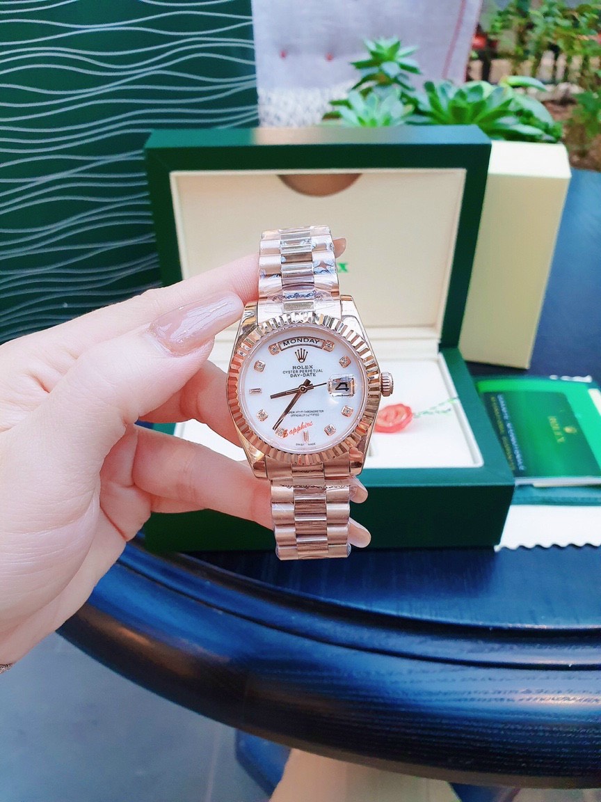 Đồng hồ Rolex Super Fake Nhật dây kim loại màu vàng hồng 36mm