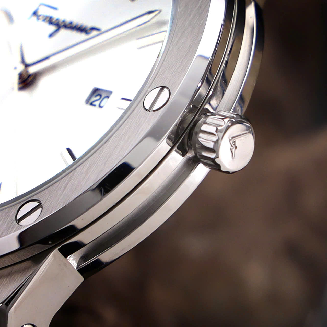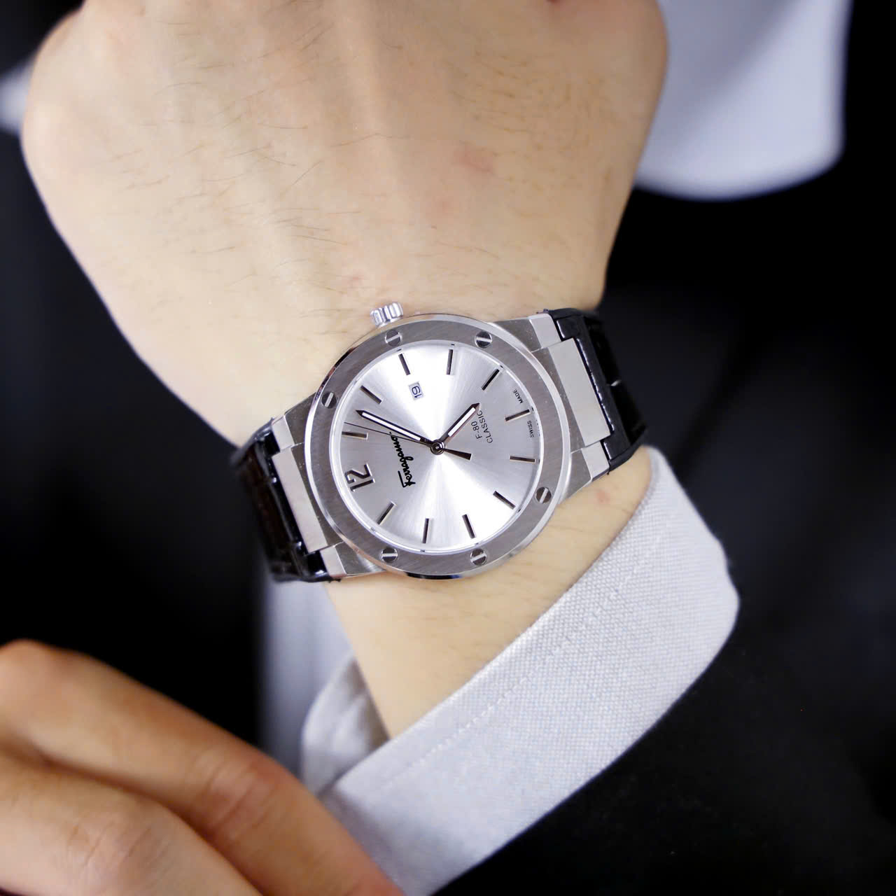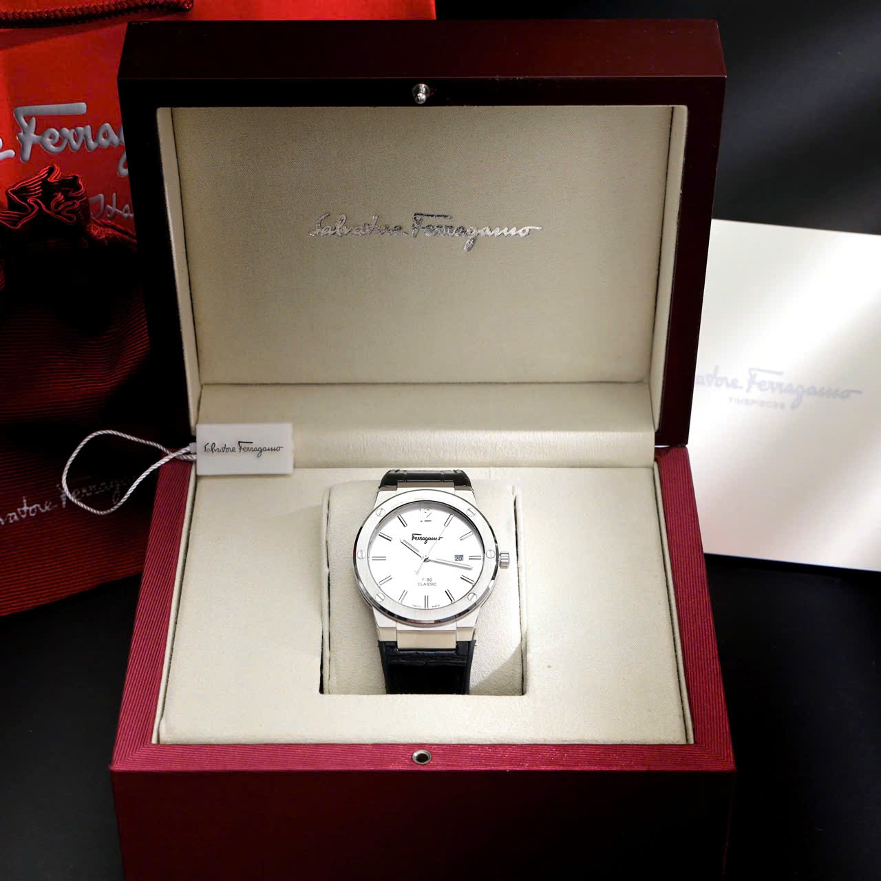 Đồng hồ Salvatore Ferragamo F80 Classic nam dây da đen mặt trắng Fake 11 40mm