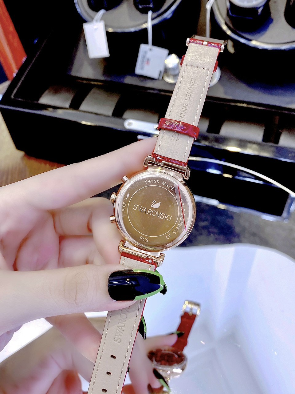 - Đồng hồ Swarovski nữ dây da mềm mại bền và ôm tay