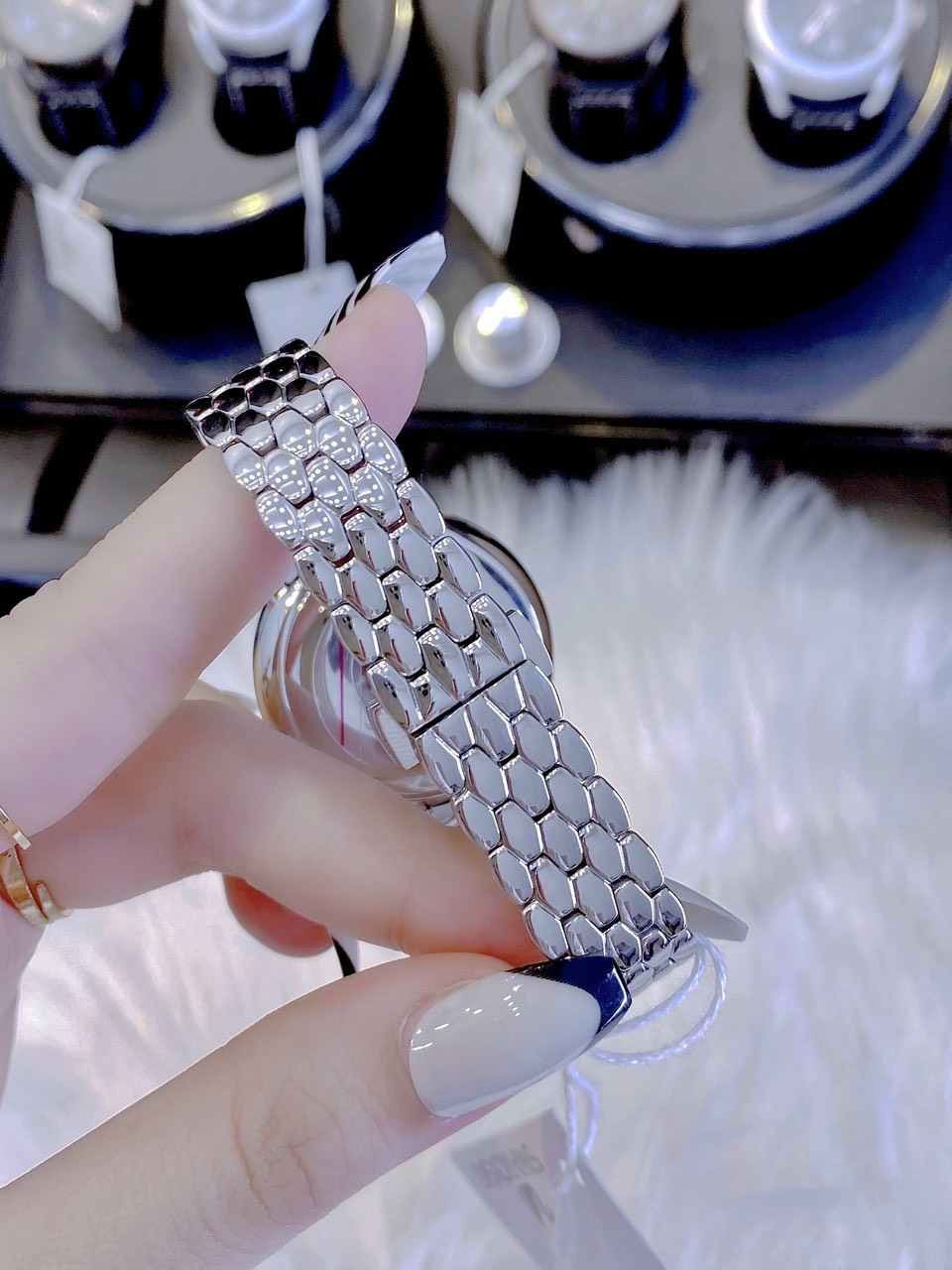 - Đồng hồ Swarovski nữ dây kim loại thép mềm và ôm tay