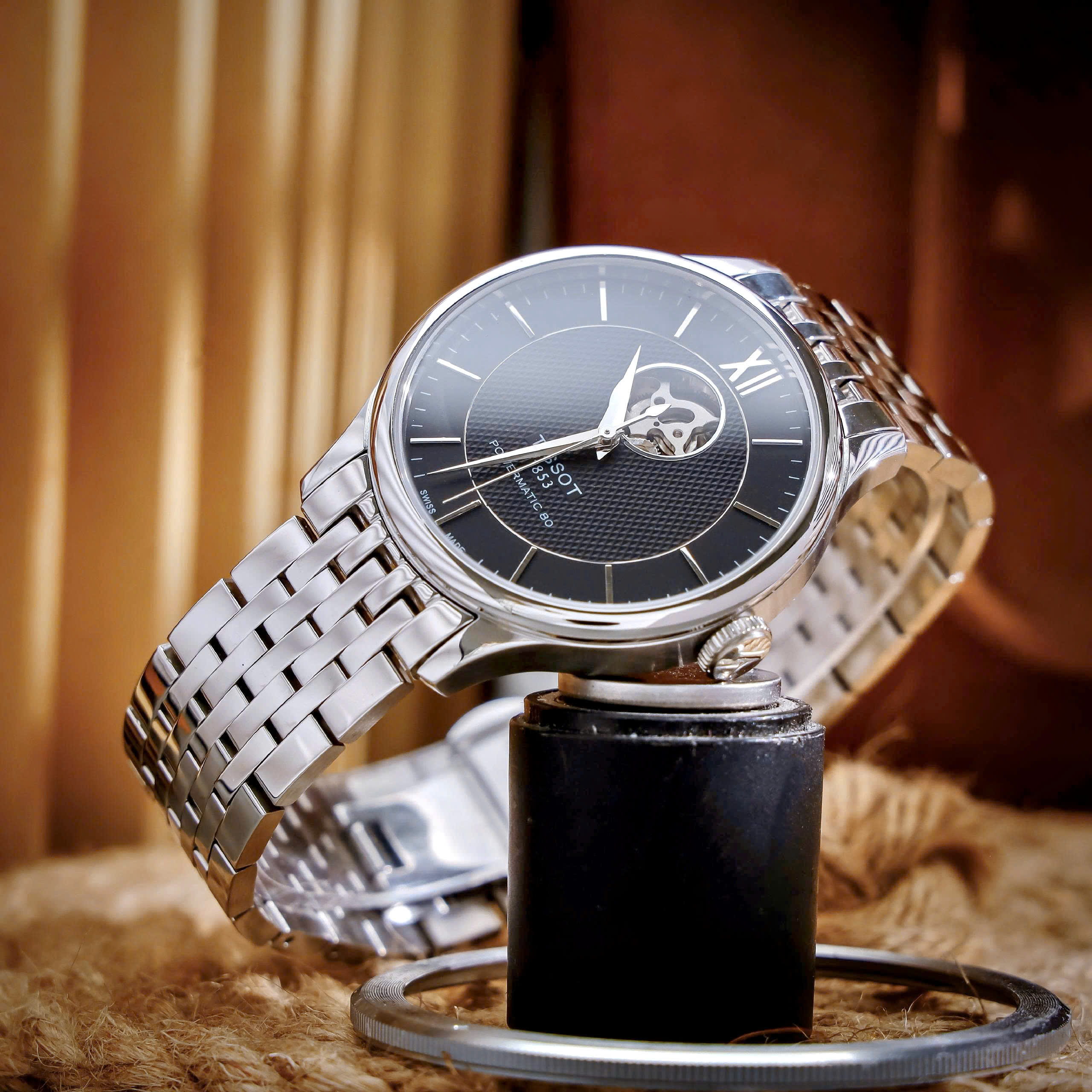 Đồng hồ Tissot Tradition Open Heart Powermatic 80 Mặt Đen Máy Lộ Cơ Fake 11 40mm