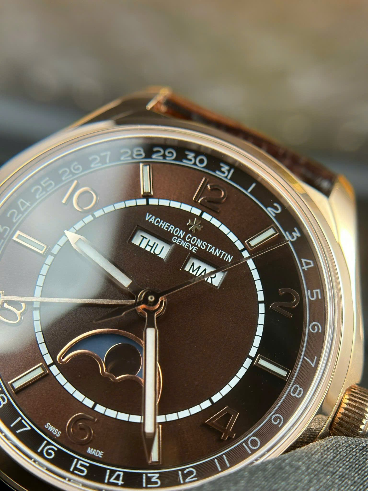 Đồng hồ Vacheron Constantin Rep 11 Fiftysix Complete Calendar 4000E màu nâu dây da 40mm