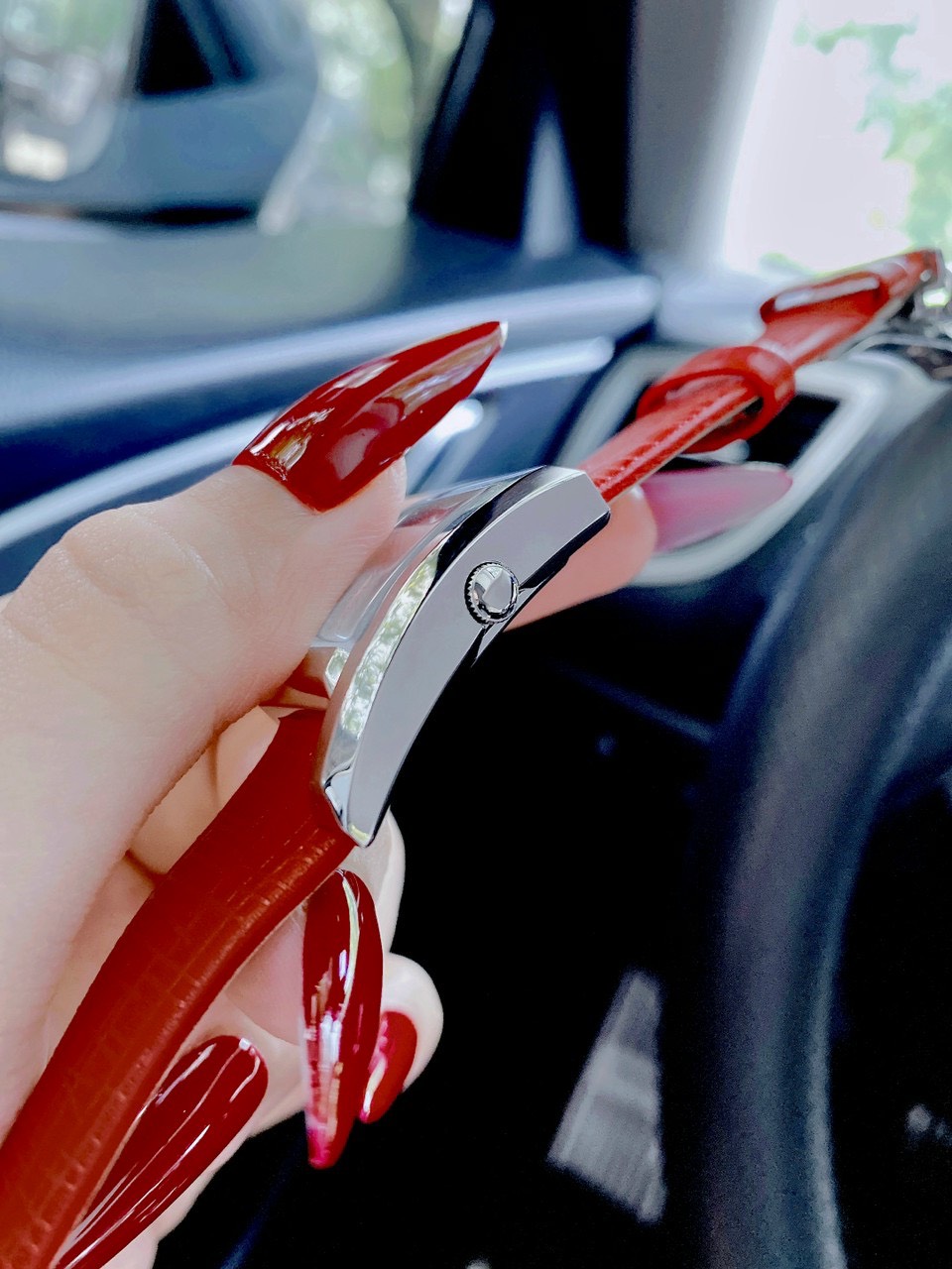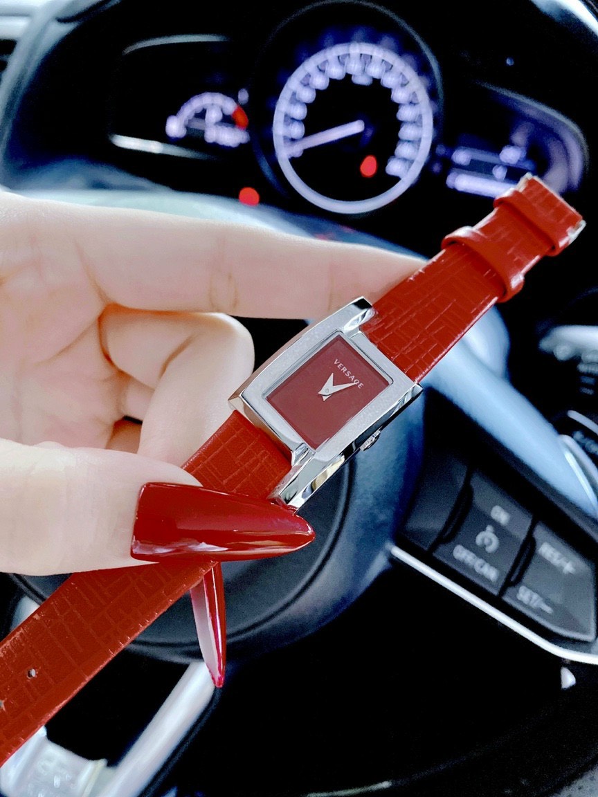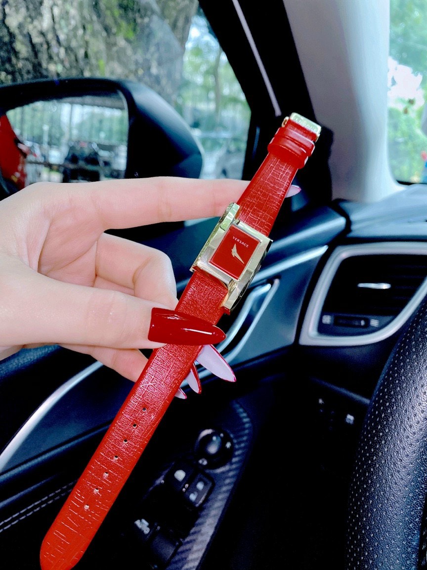 Đồng hồ Versace Greca Icon nữ dây da màu đỏ Like Auth