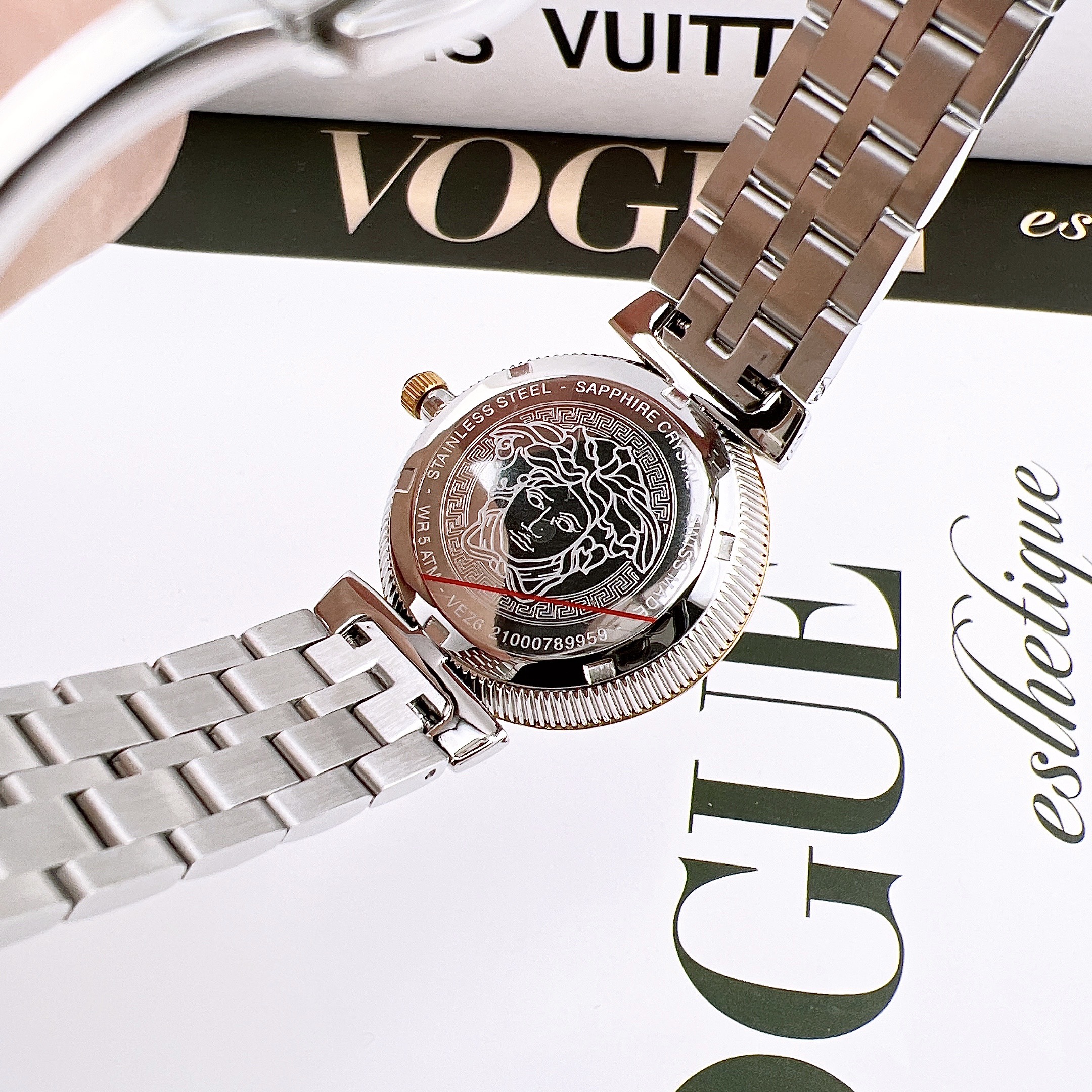 Đồng hồ nữ Versace Like Auth sử dụng bộ máy Pin đến từ Thụy Sĩ – bộ máy mang tính chính xác và bền bỉ, 1 vài mẫu đồng hồ được tích hợp những công nghệ hiện đại. Độ chống nước 3ATM – 5ATM thoải mái rửa tay, đi mưa.