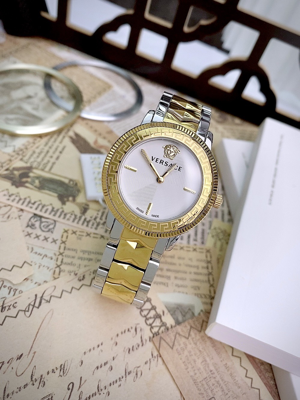 Đồng hồ Versace Tribute nữ mặt trắng dây kim loại Like Auth