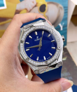 Đồng Hồ nam Hublot Orlinski đính đá mặt xanh blue máy cơ nhật giá rẻ fake cao cấp 40mm